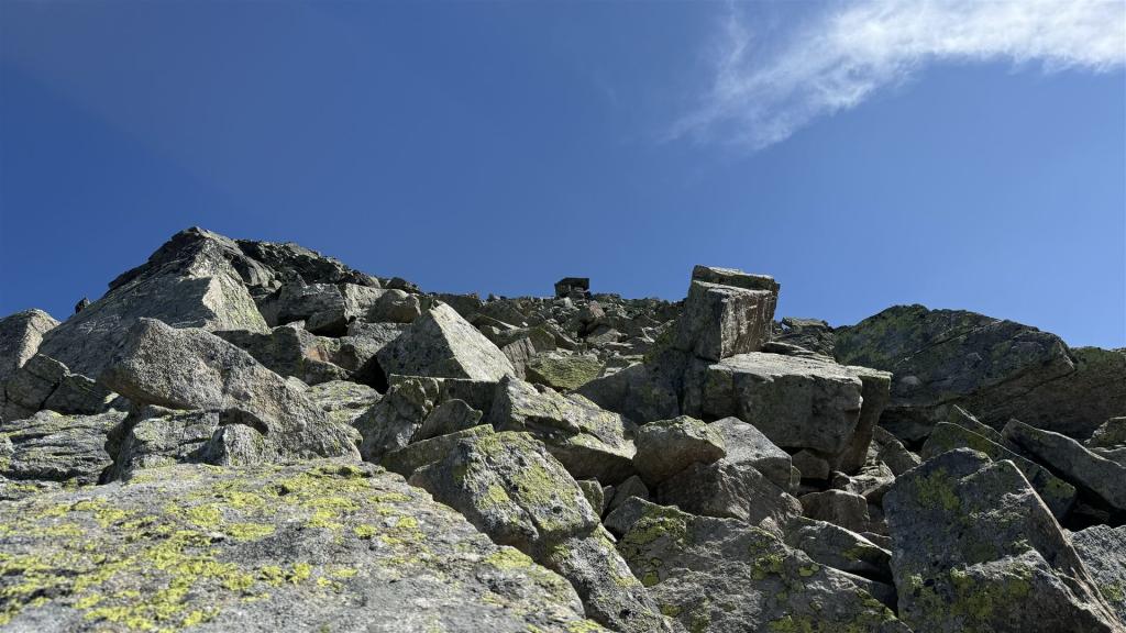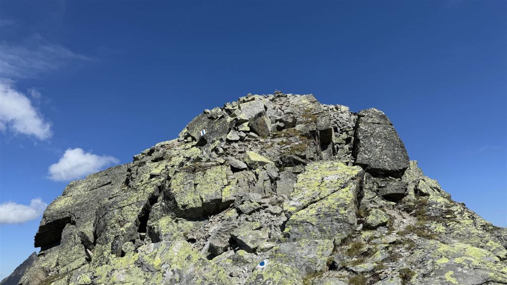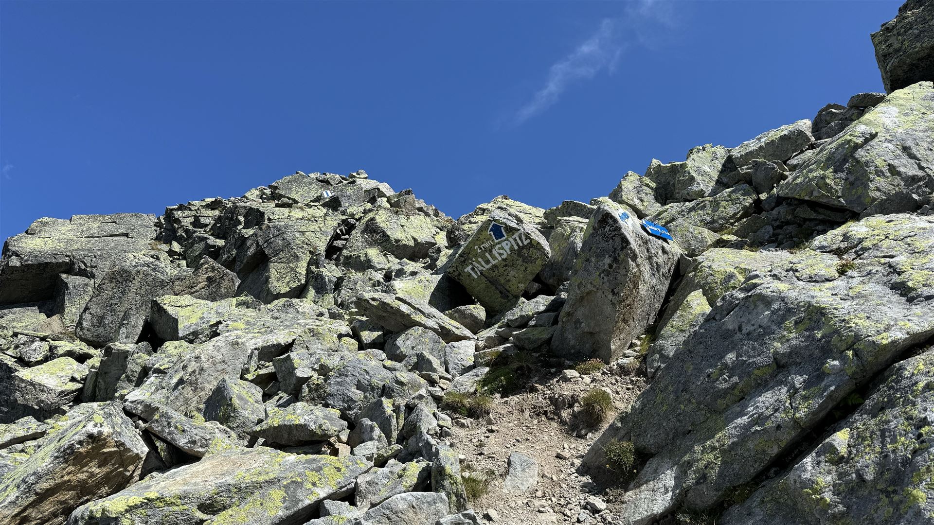 Es war wichtig, den blau-weiss Markierungen zu folgen, um nicht auf Abwegen zu gelangen. Was nicht immer einfach war. Der Gipfel war erst kurz vor Erreichen zu sehen.