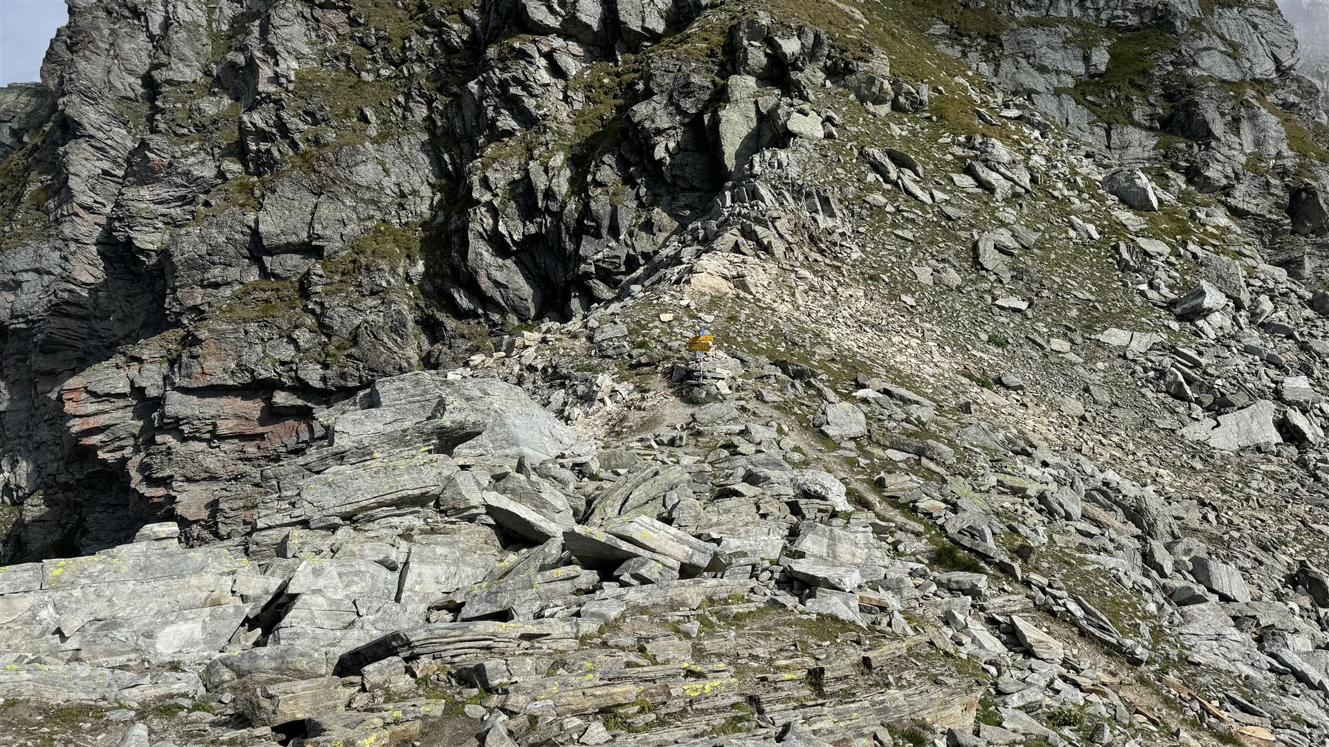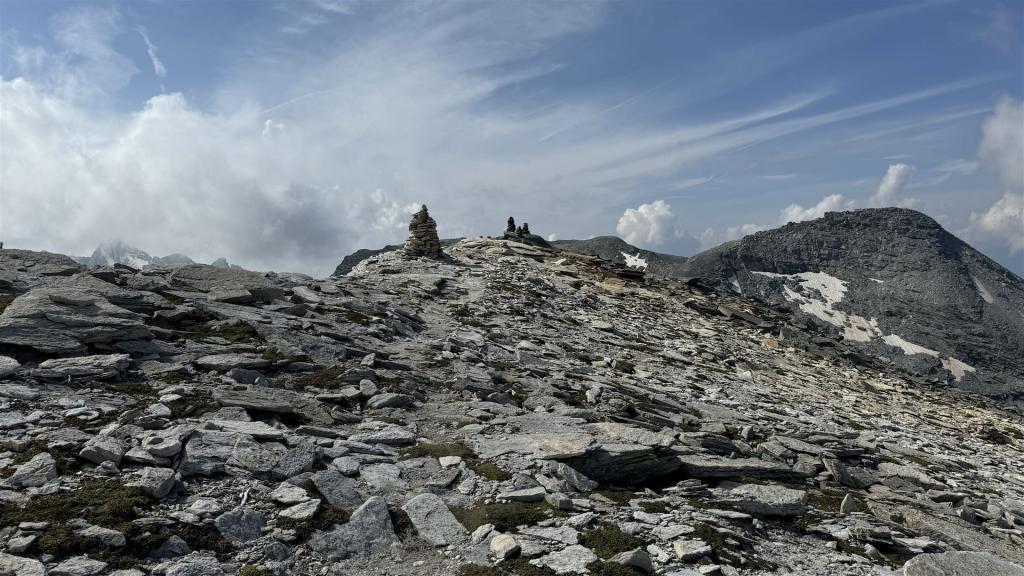 Auf dem Passo Soreda steht man vor dem Pizzo Cassinello. So etwas habe ich noch nie gesehen. Ein purer Steinplatten-Berg. Die Steinplatten sind teilweise so gross und seltsam angeordnet. Ein Kunstwerk? Aufpassen muss man auf die diversen, tiefen Spalten zwischen den Steinplatten.