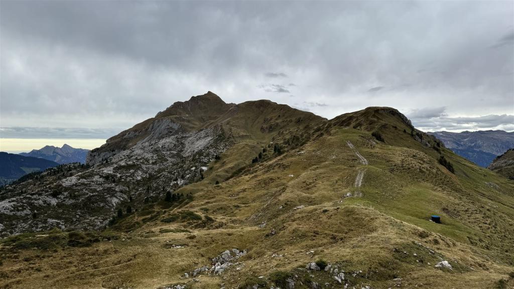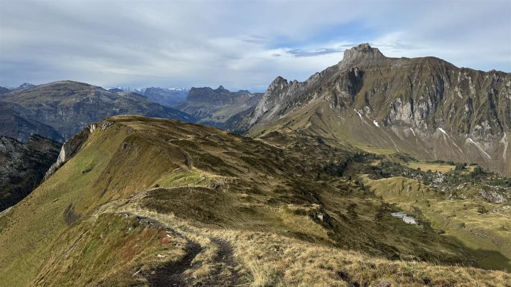 Interessanter Aufstieg mit Auf und Ab über Lachengrat, Chrutlenstogg und Breitchamm. Und dann der steile Schlussauftstieg im Grass auf den Schijen. Das hat Spass gemacht.
