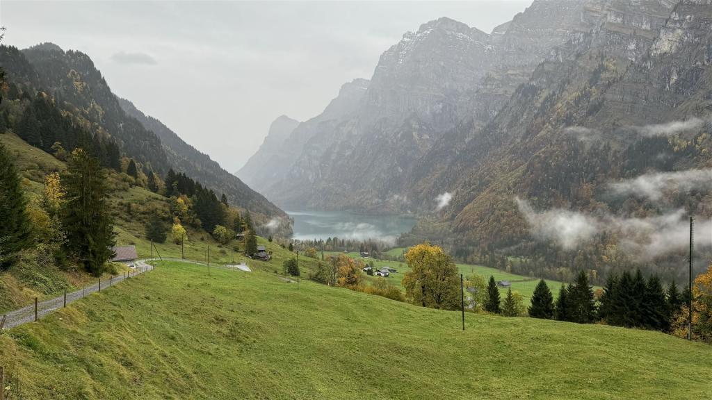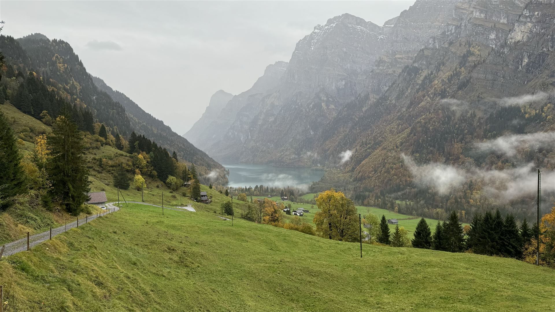 Im Abstieg nach viel Regen, Blick auf Klöntalersee