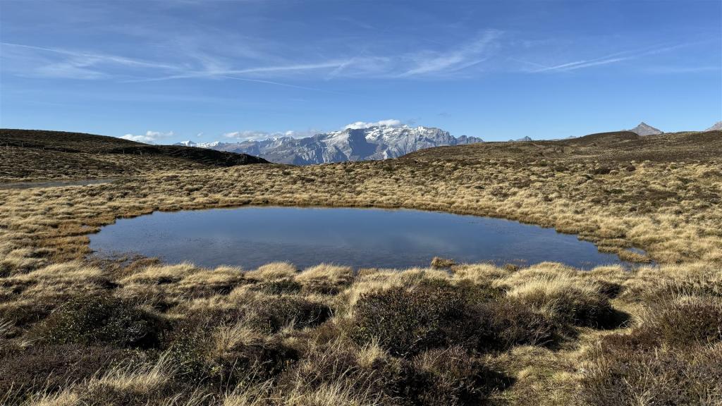 Die Hochebene Alp dil Plaun zwischen Dreibündenstein und Fulbergegg/Fulhorn ist wunderschön mit vielen kleinen Seelein.