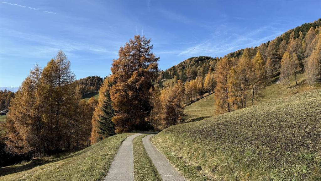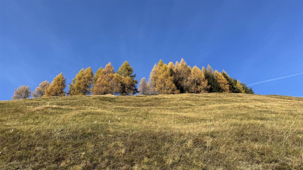 Im Abstieg mit Gelb (Lärchen) und Blau (Himmel)