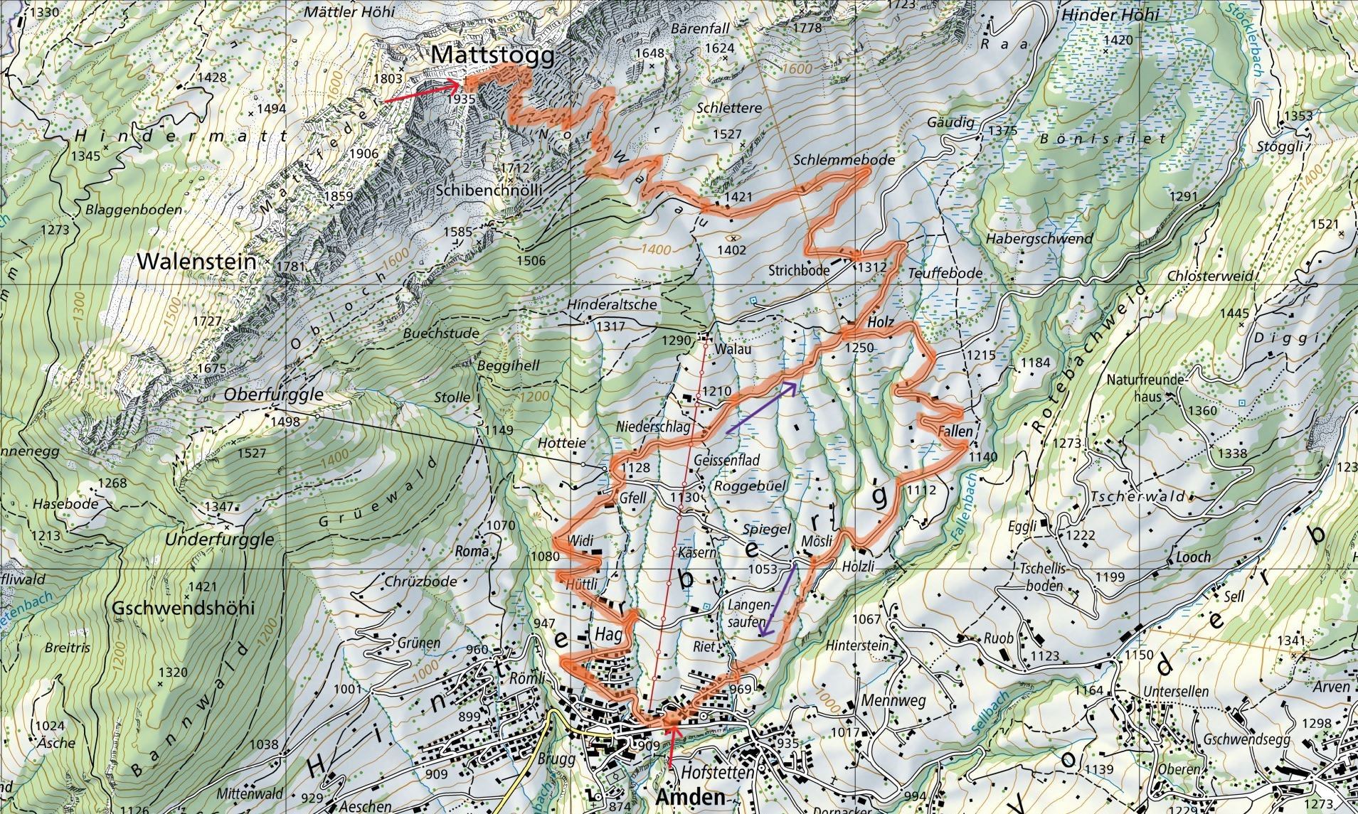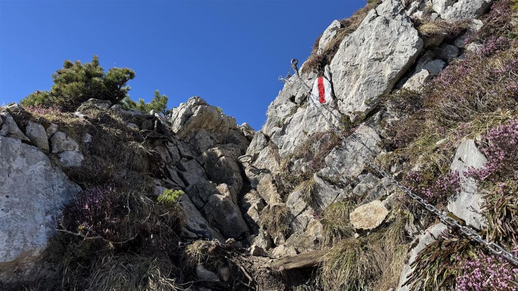 Die Tour ist nicht schwierig. Bis zum Fuss des Mattstock lief ich auf der Strasse. Im Aufstieg wird es steiler, hat aber einen guten Pfad. Im obersten Teil sind neue Ketten zum Festhalten montiert.