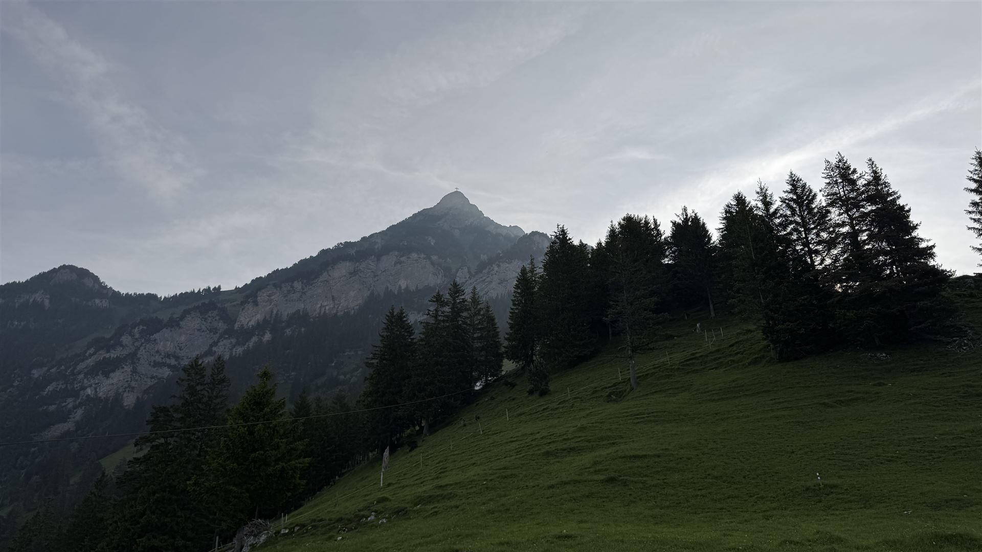 Zuerst ging es steil, steiler, am steilsten auf den bekannten und gut besuchten Rophaien (2078m) mit riesigem Gipfelkreuz.