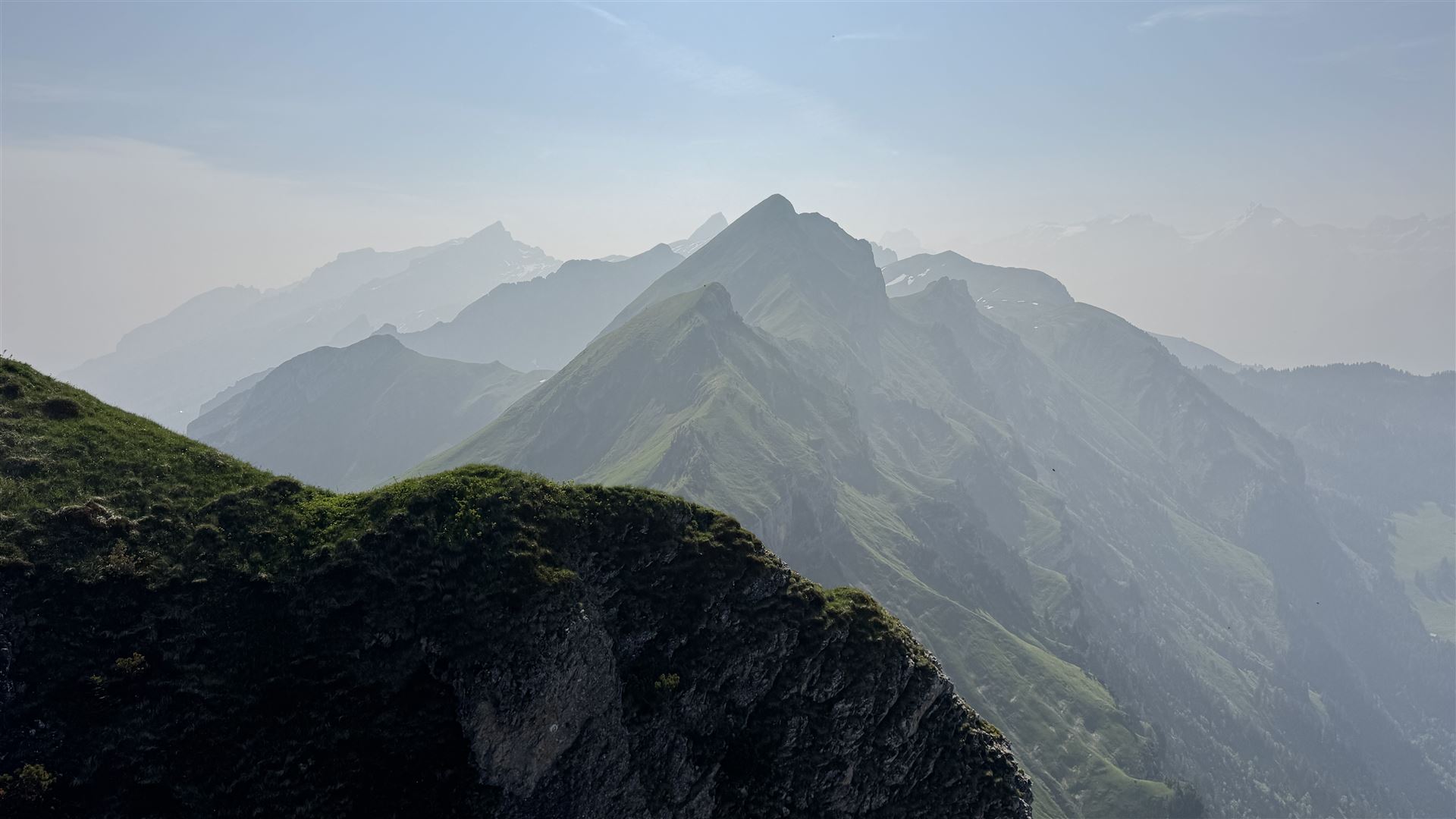 Bei dieser Tour fehlte die Fernsicht. Das war sehr schade, weil man gerade hier ein fantastisches Panorama erwartet konnte. Aber "anscheinend" vernebelte der Rauch der vergangenen Waldbrände in Kanada die Schweiz.
