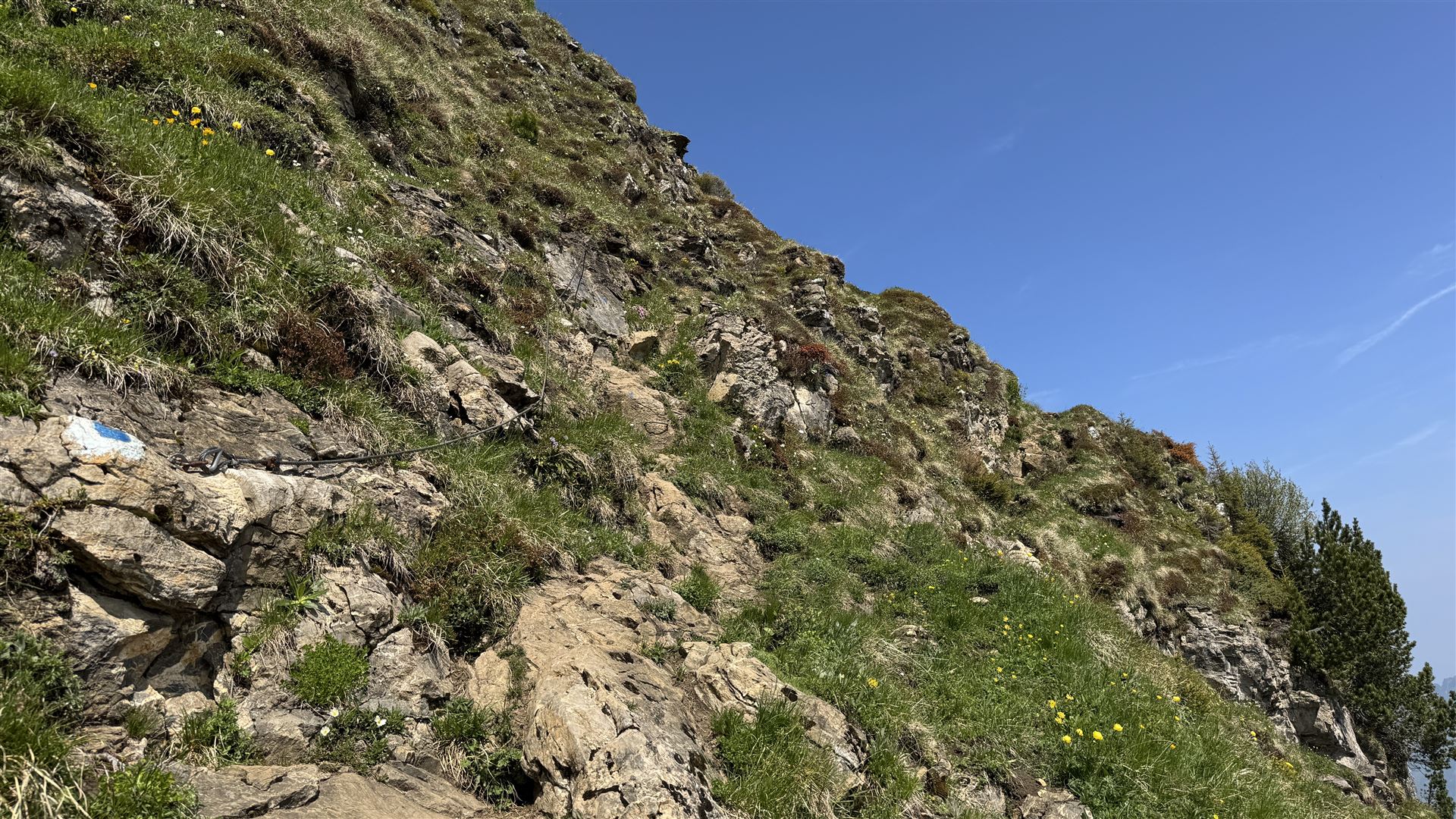 Vom Rophaien zum Diepen, schwierigere Stellen mit Seilen zur Sicherung