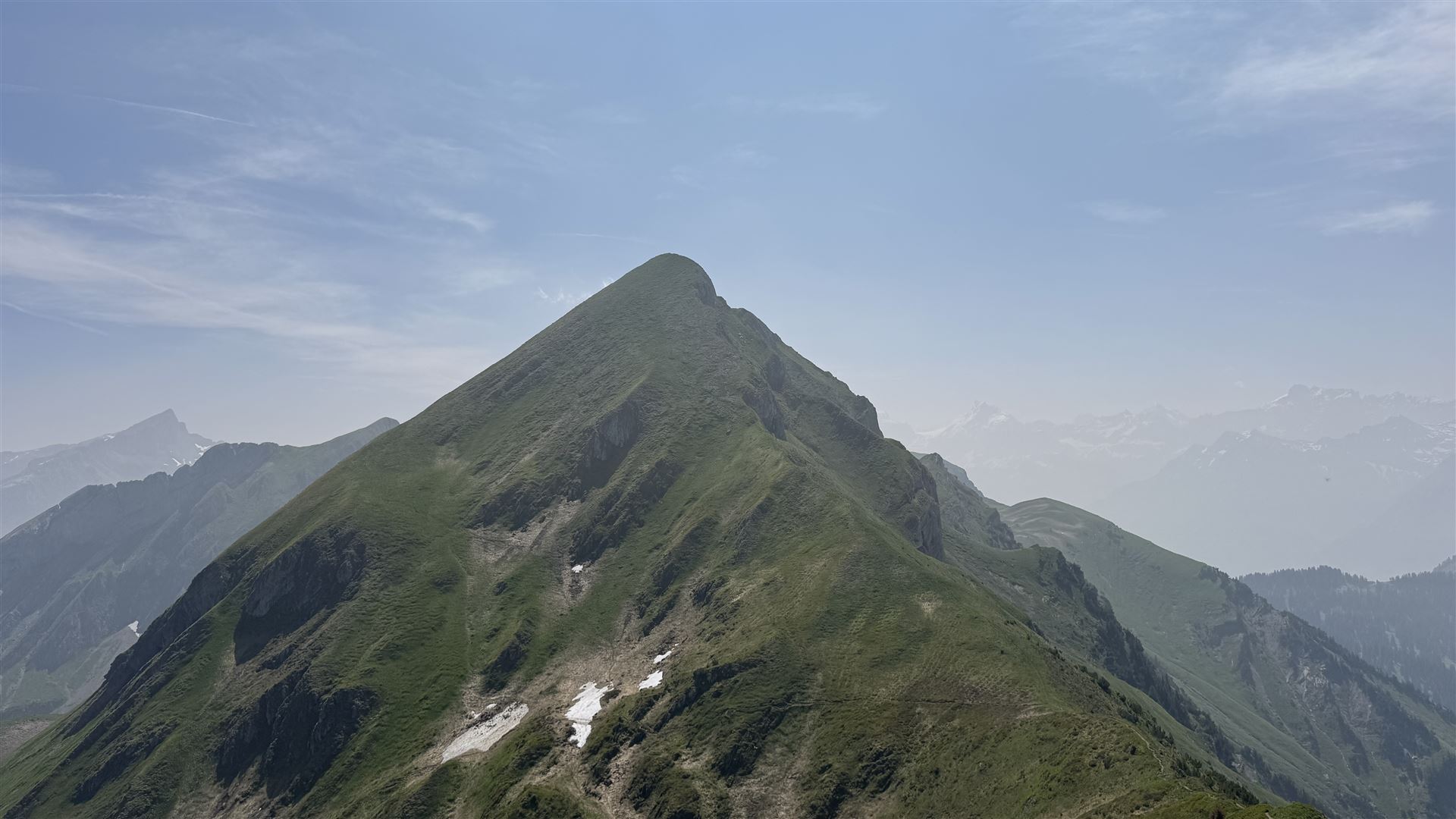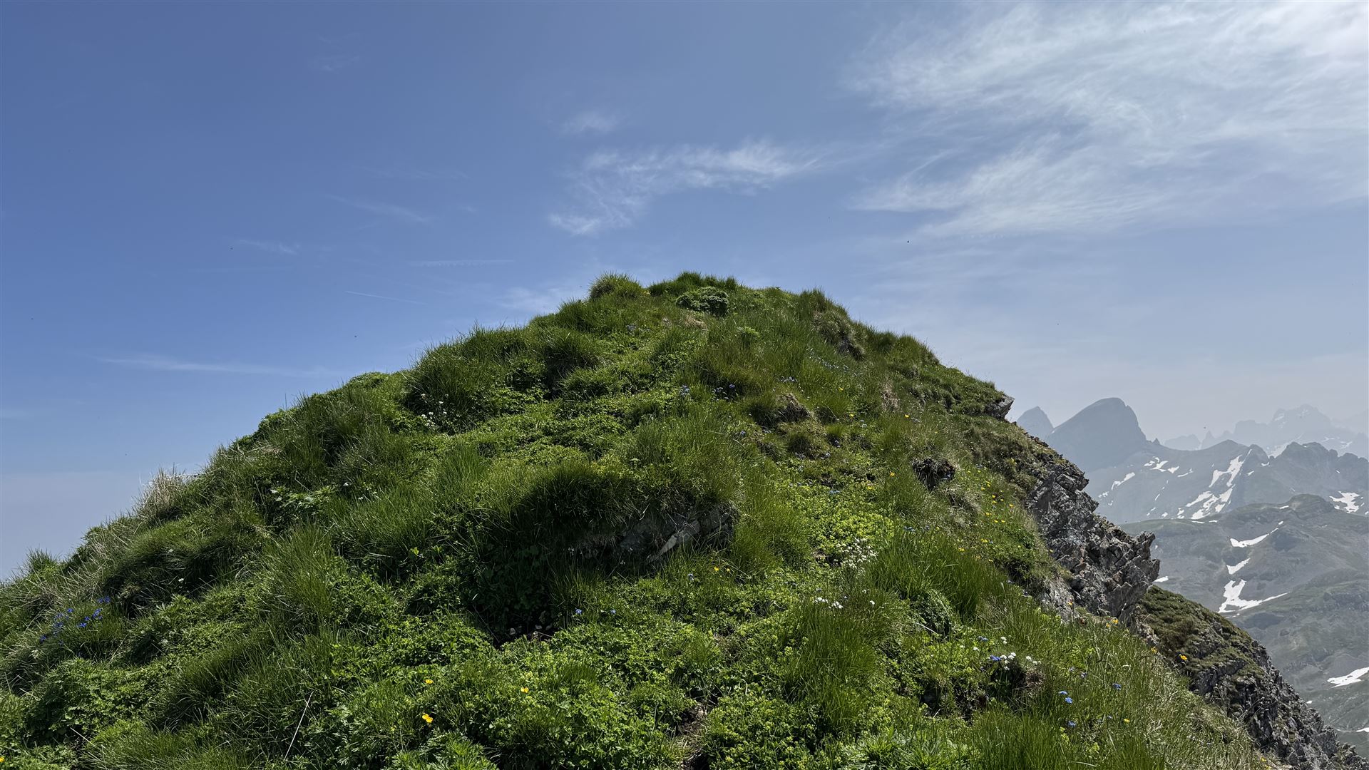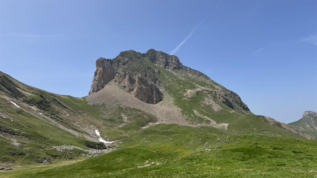 Der Diepen (2221m) hatte dann ein Grashang für den Aufstieg. Auf diesem Gipfel war ich alleine. Es hatte kein Gipfelkreuz und auch kein Steinmännchen. Nur Gras und sehr viel Brennessel.