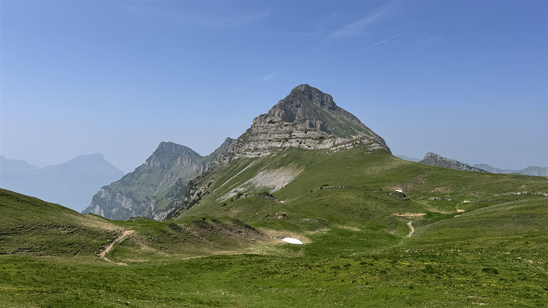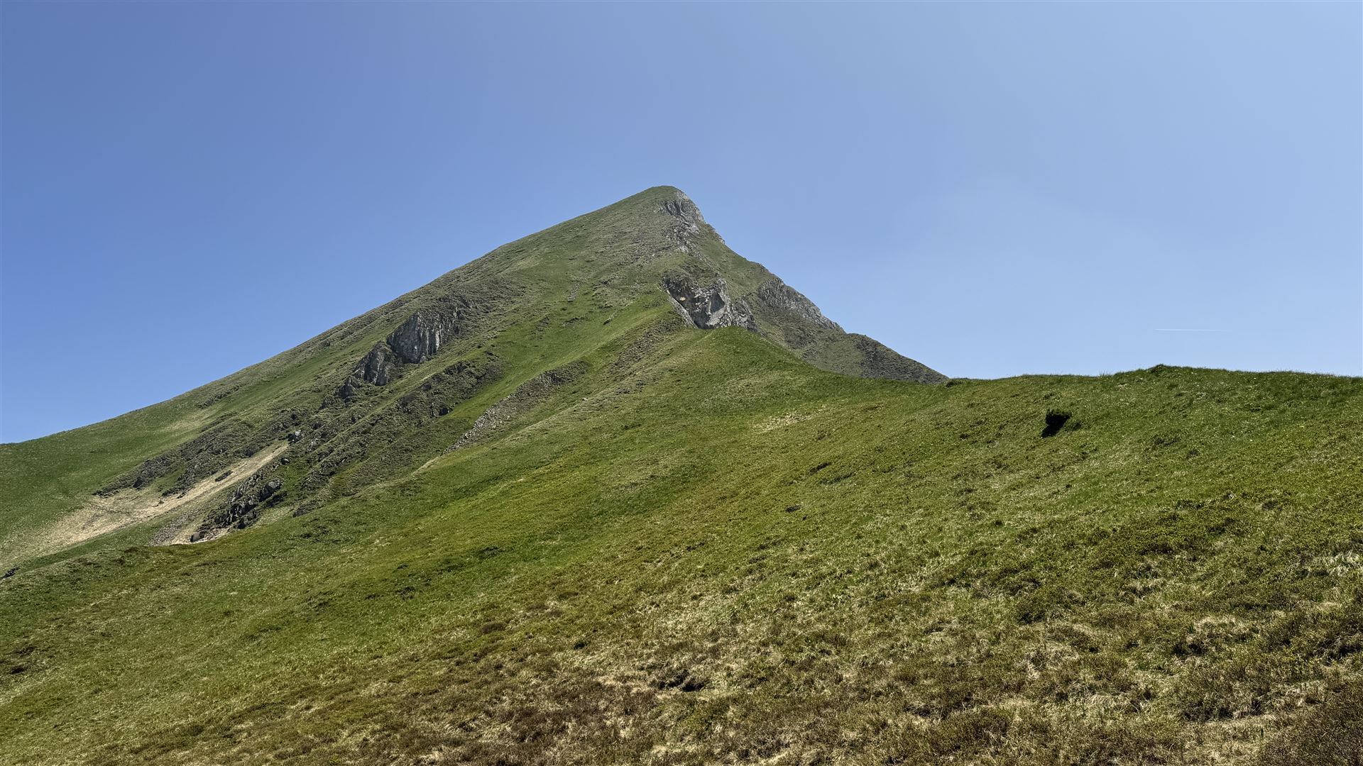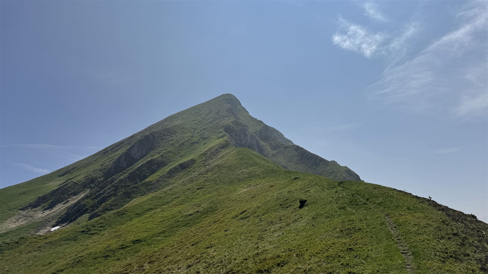 Der Diepen (2221m) hatte dann ein Grashang für den Aufstieg. Auf diesem Gipfel war ich alleine. Es hatte kein Gipfelkreuz und auch kein Steinmännchen. Nur Gras und sehr viel Brennessel.