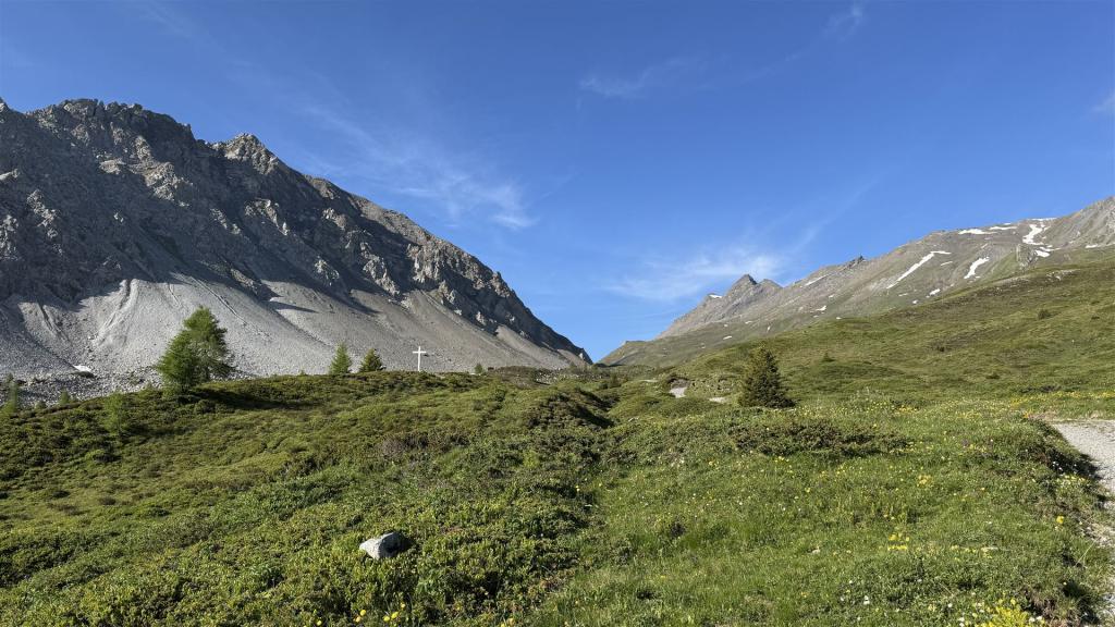 Bei der Furcletta, hier beginnt der Aufstieg auf Piz Toissa links hoch