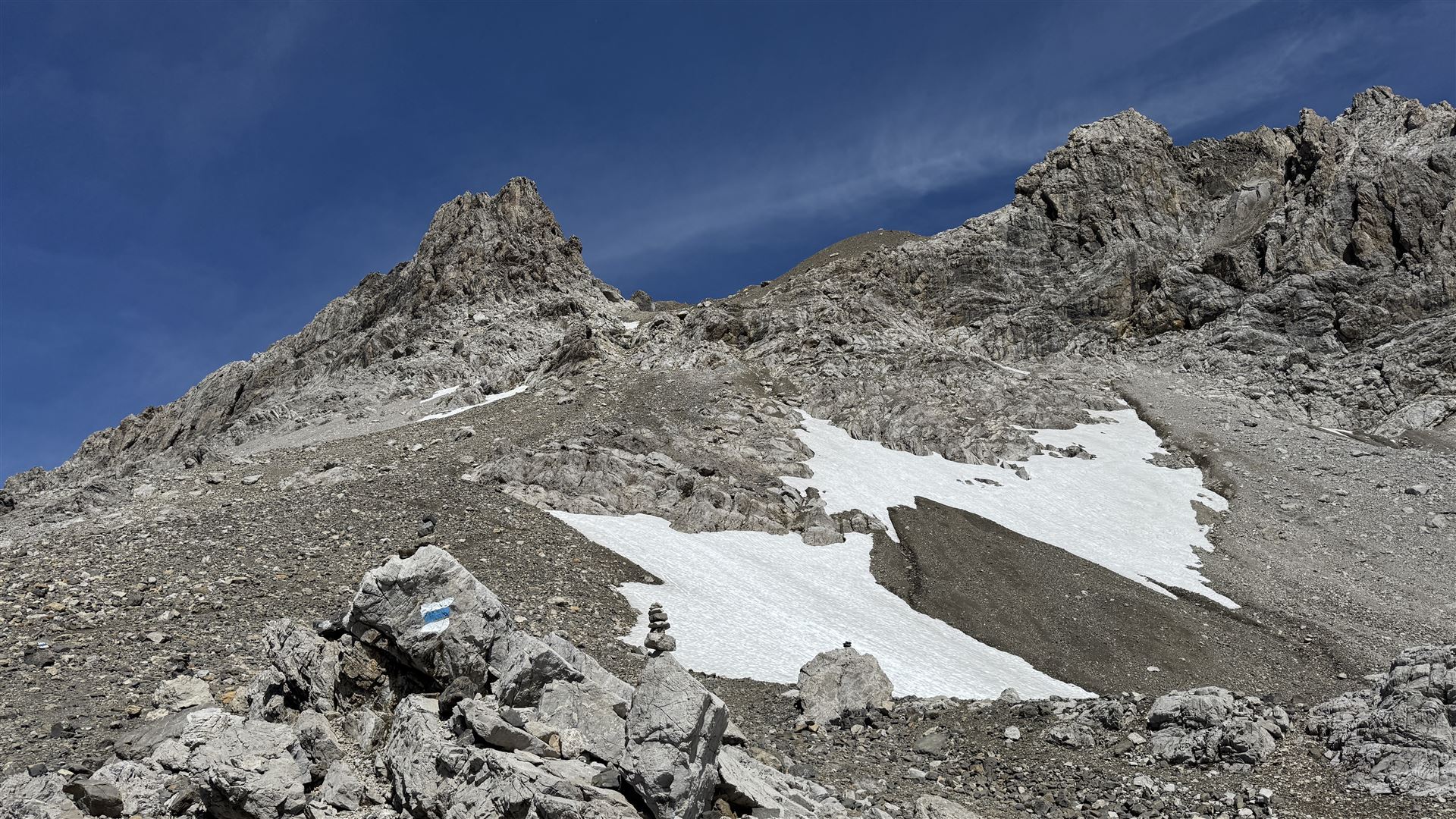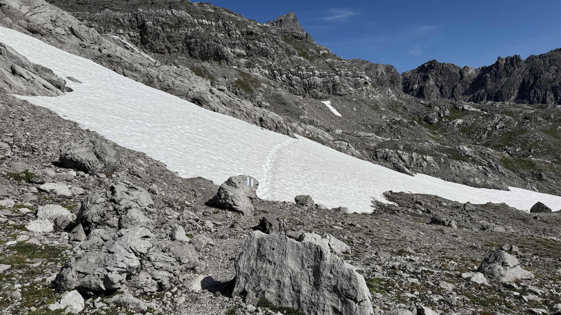 Der Weg über die Gamsluggen und auf die Schesaplana ist blau-weiss markiert und machbar, aber ziemlich schwierig.