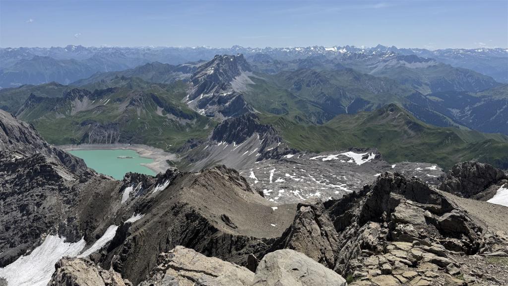 Auf der Schesaplana, Blick auf Lünersee, Totalp, Silvretta