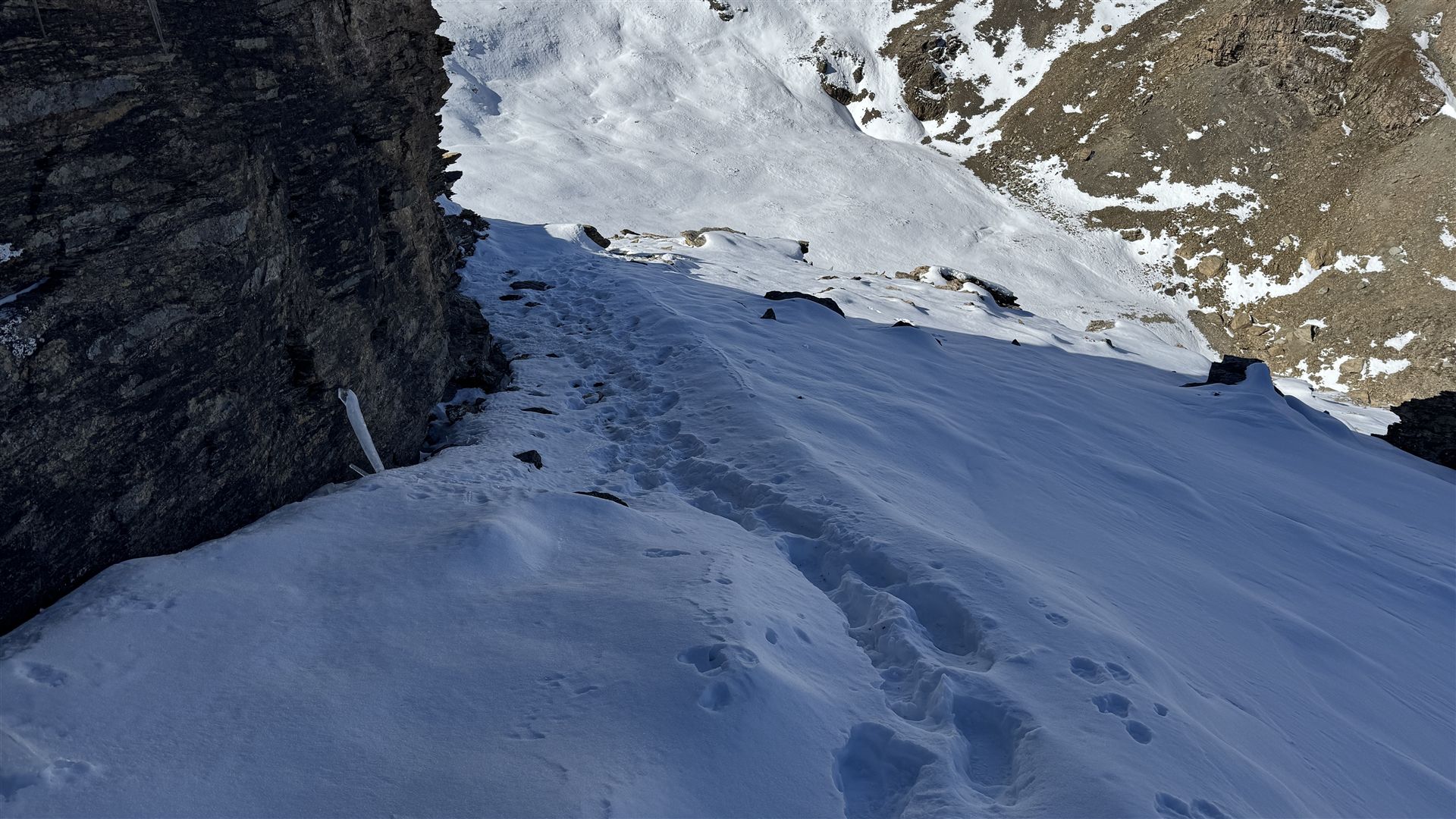 Dafür die hohen Bergschuhe zusätzlich im Rücksack zum wechseln. Vielleicht auch noch die Steigeisen dazu.