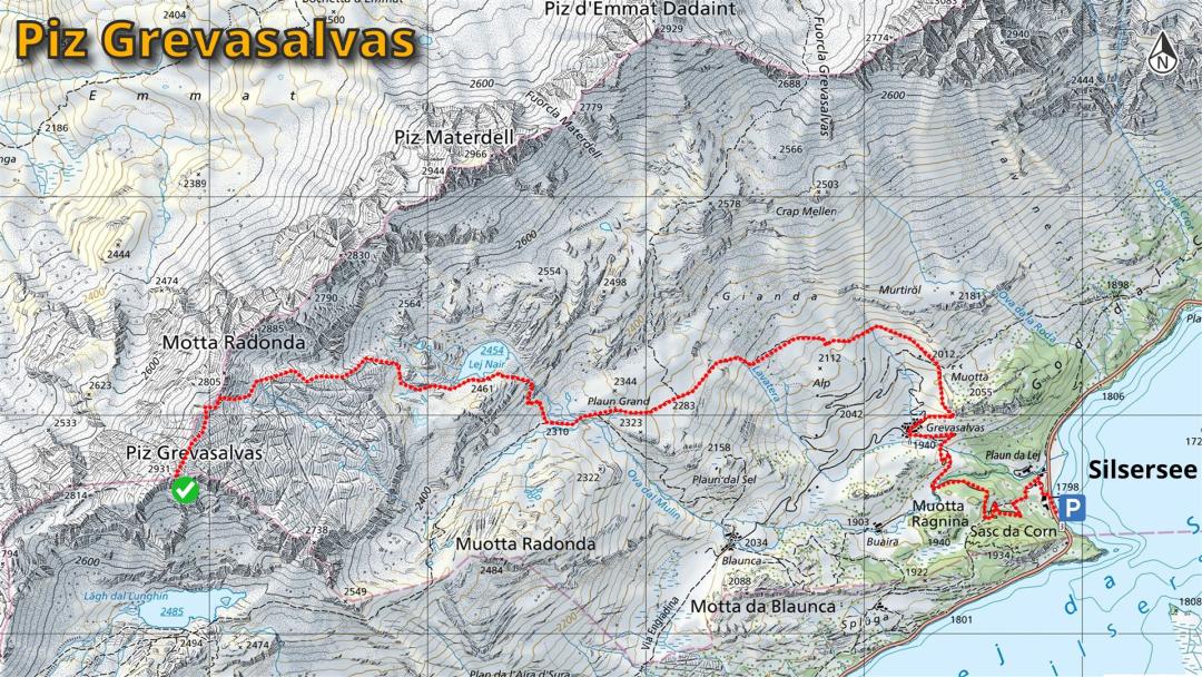 Am Lej Nair, Blick auf Piz Grevasalvas -
