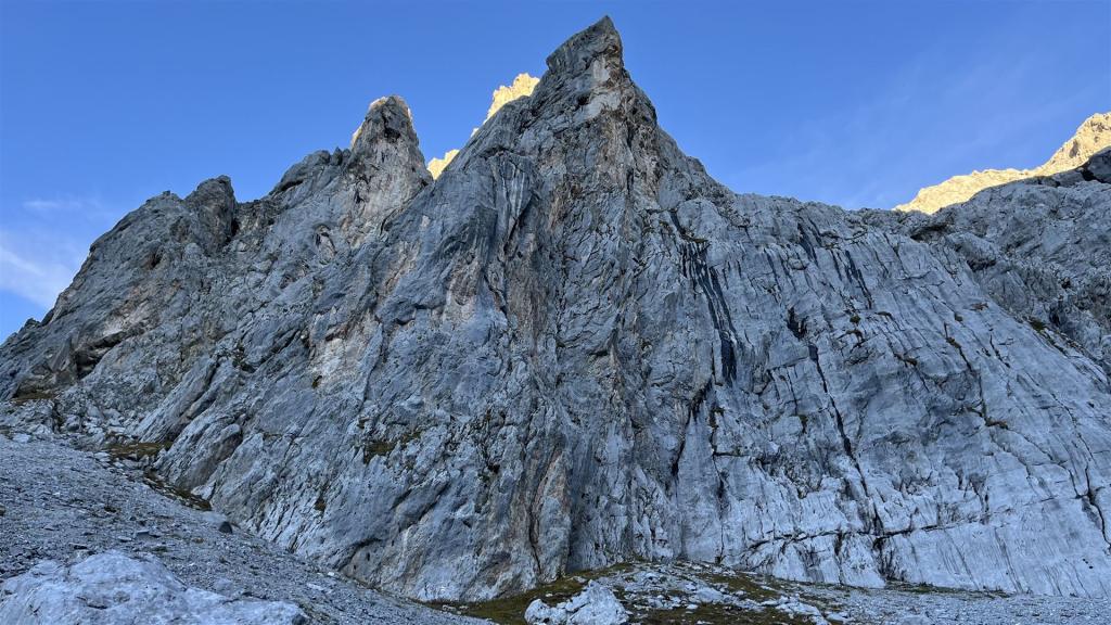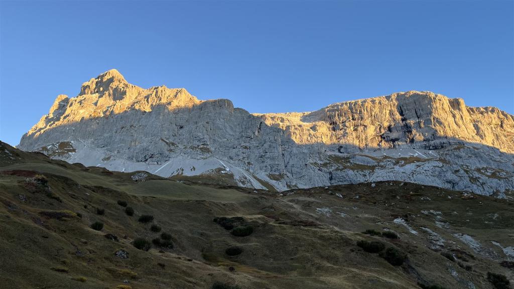 Nach dem Start bei ca. 1900m, die Sulzfluh mit 1. Sonnenlicht