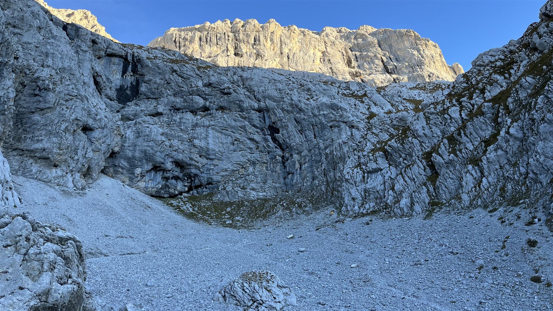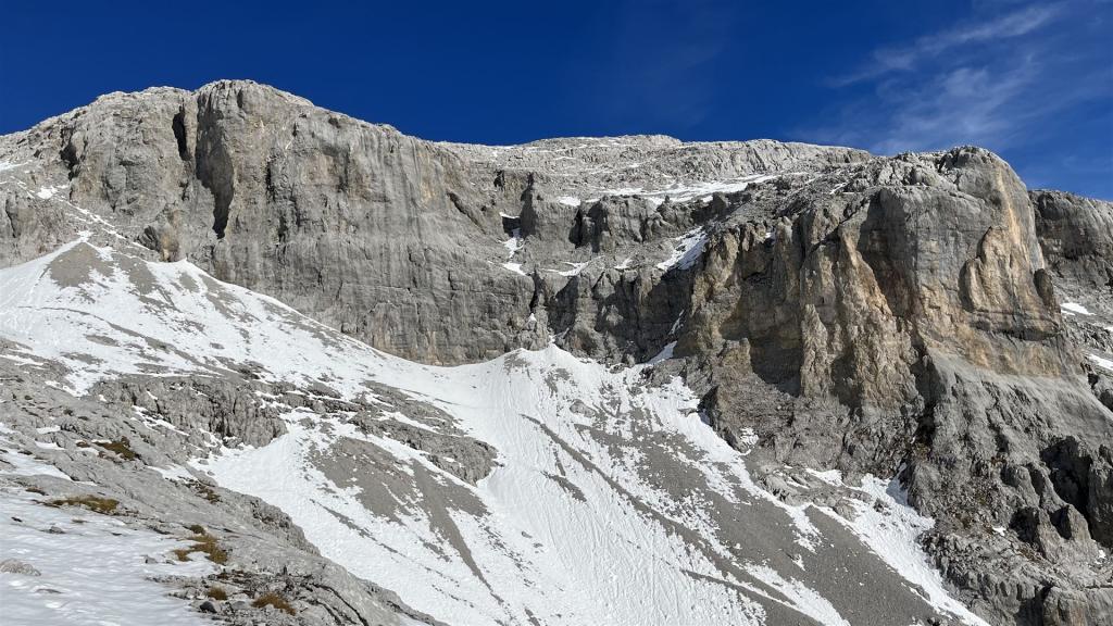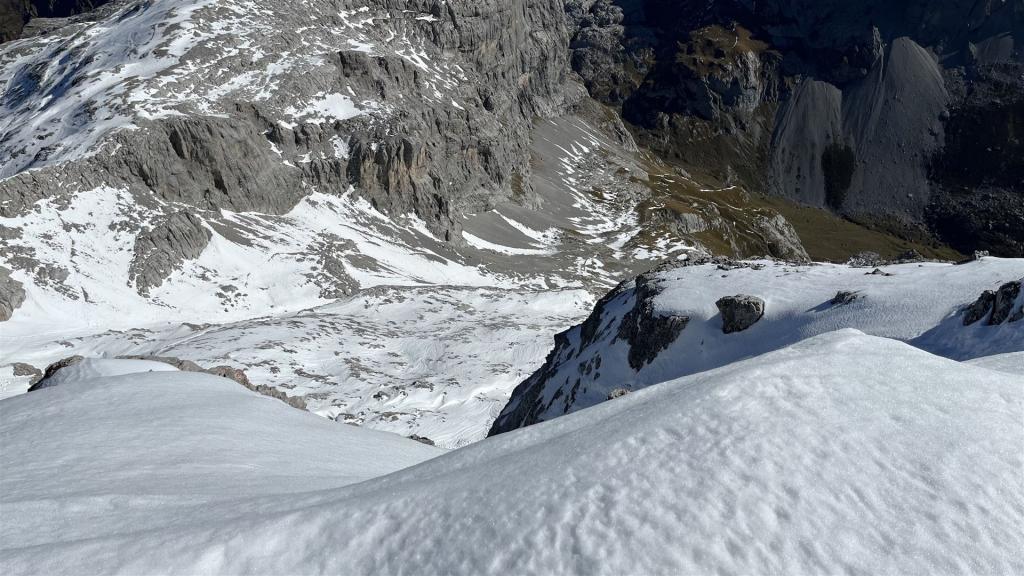 Bei Pt.2158, vorne rechts gibt es einen kleinen Klettersteig zum Gemschtobel