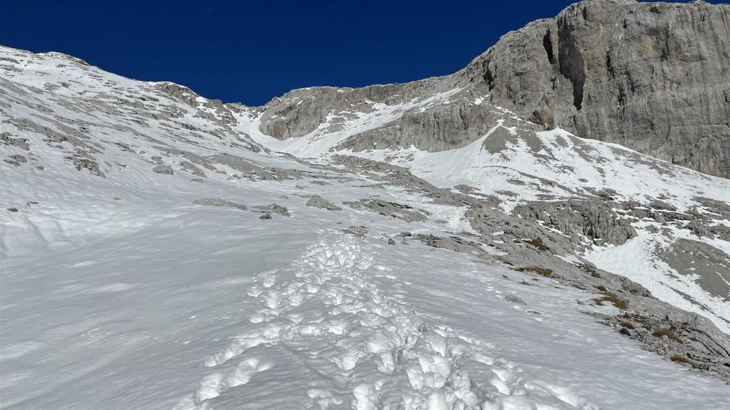 Die Schneesituation hat mich trotzdem überrascht. Es hatte mehr Schnee als ich vermutete. Das gab der Tour einen besonderes Feeling. Manchmal benötigte das Gehen im Schnee zusätzlichen Kraftaufwand und manchmal erleichterte der Schnee das Gehen.