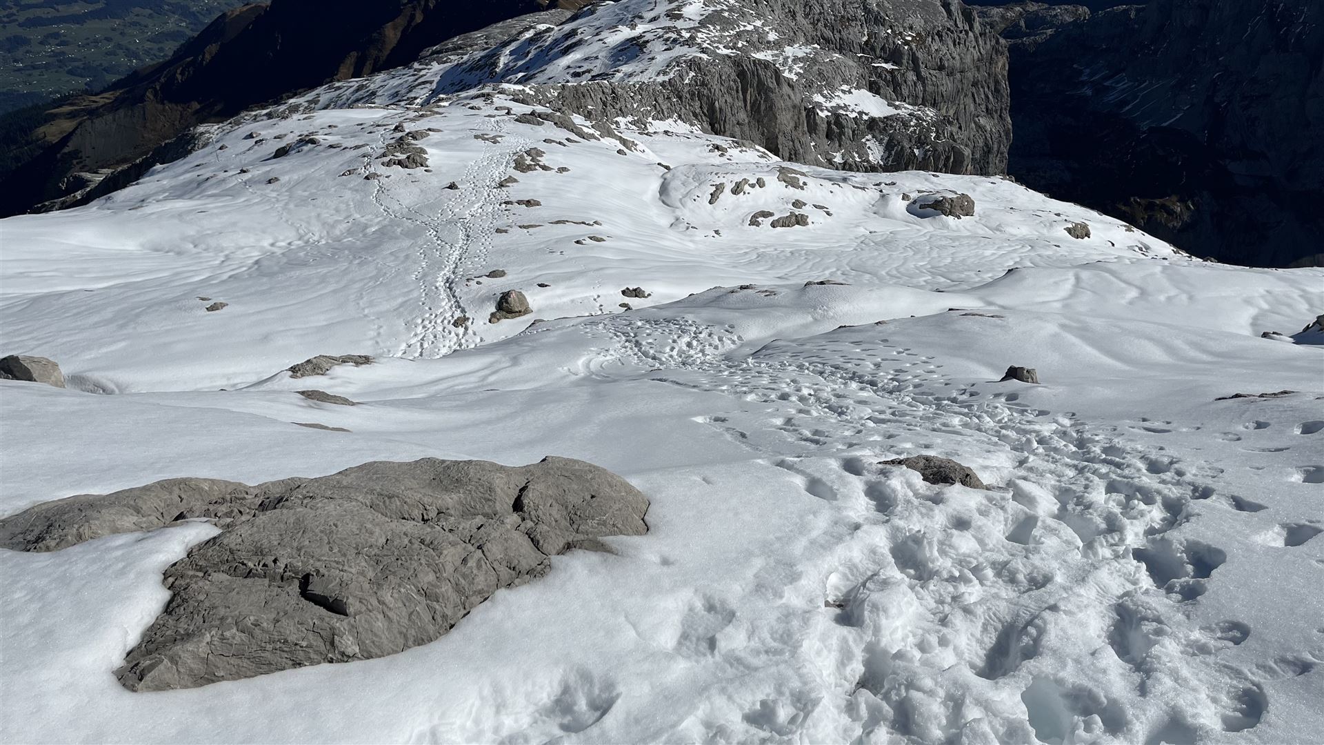 Blick zurück auf die Fussspuren im Schnee